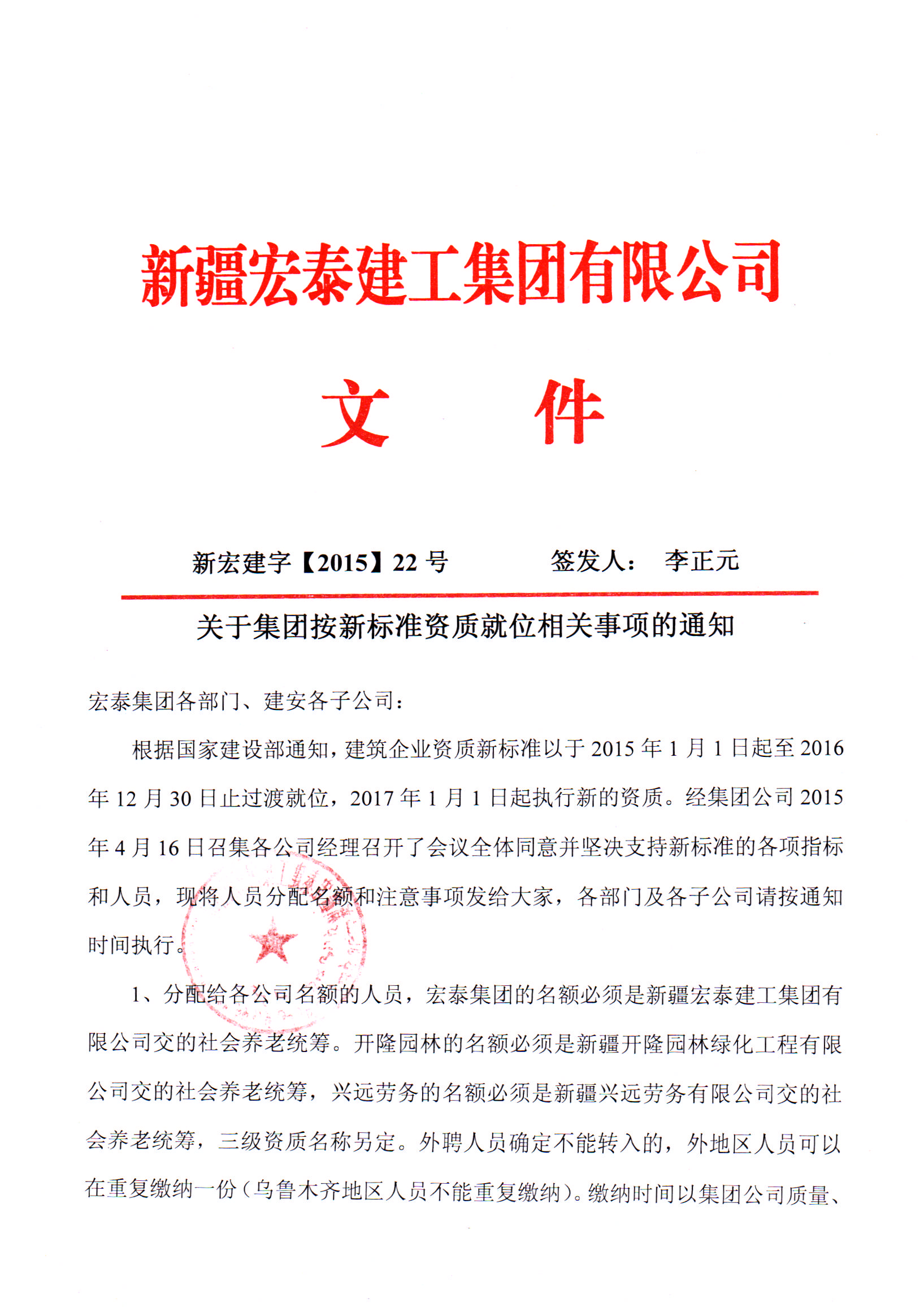 關(guān)于集團(tuán)按新標(biāo)準(zhǔn)資質(zhì)就位相關(guān)事項(xiàng)的通知